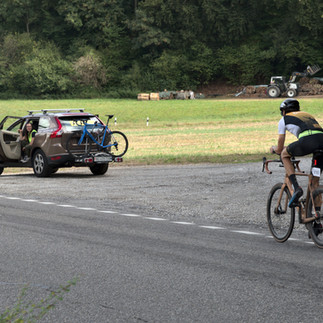 Um den Fluss nicht zu unterbrechen, entscheide ich mich für die Überquerung des Jaunpasses - anders als geplant - auf dem Aerobike zu bleiben. Es hat zwar einige etwas steilere Stellen, aber die Entscheidung stellt sich als richtig heraus und ich komme gut über den Pass. Aufgrund der zwischenzeitlich trägen Verdauung verbrauche an den nächsten zwei Timestations in Jaun und Cully viel Zeit im Toi Toi. Die weitere Fahrt in der Nacht wird zäh und ich habe das Gefühl ich komme gar nicht mehr aus dem Welschland heraus. Als ich merke, dass die Müdigkeit immer stärker wird und ich gerade darüber nachdenke, ob ich mir nun einen Koffein-Booster gönnen oder besser noch aufbewahren soll, höre ich eine Stimme von hinten: "Hey Felix!". Es ist Andreas, welcher als Führender der Challenge Strecke zu mir aufschliesst und mich überholt. Im Vorbeifahren wechseln wir ein paar Worte und ich bin auf der Stelle wieder hellwach und motiviert. Den Booster brauche ich vorerst noch nicht und ich kann das Tempo wieder etwas anziehen. Im Morgengrauen, nach der Kehre in Nyon, wieder Richtung Nord-Osten unterwegs, sehe ich plötzlich viele kleine Zwerge mit roten Zipfelmützen am Strassenrand stehen. Als ich den Zwergen näher komme, verschwinden die Zipfelmützen und ich sehe, dass darunter lediglich Grasbüschel sind, welche von der angrenzenden Wiese in die Strasse hineingewachsen sind.
